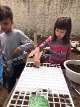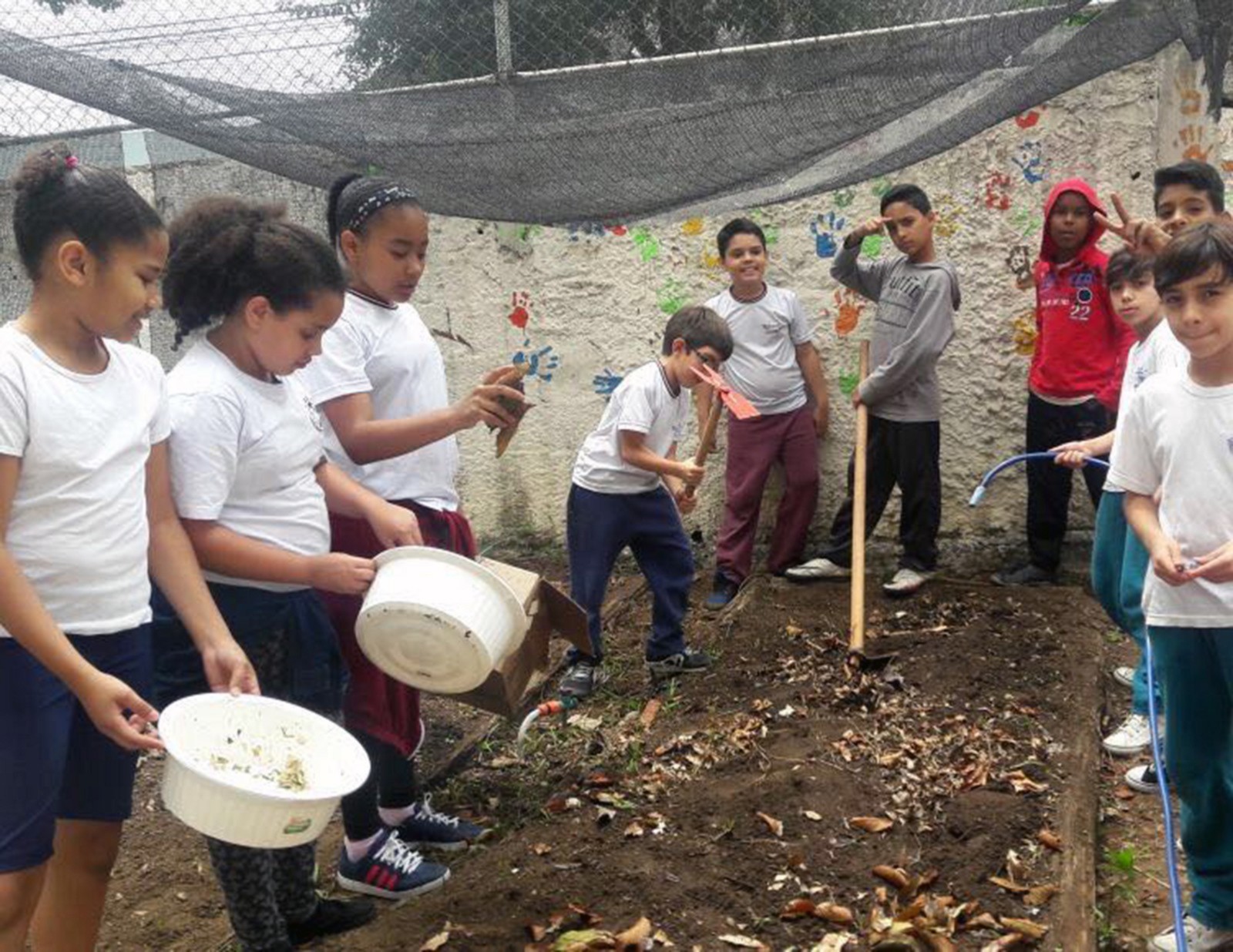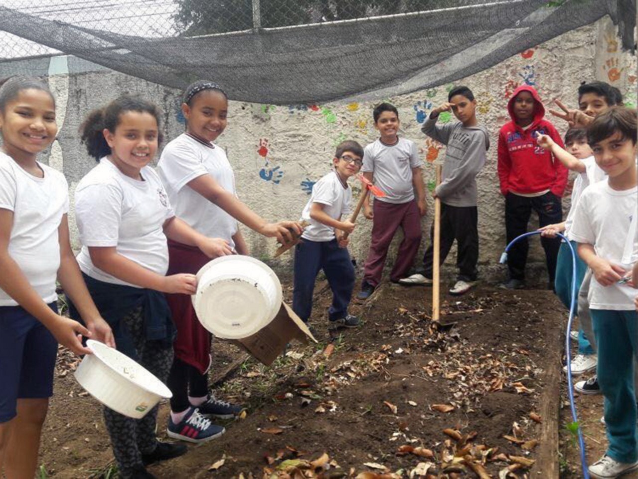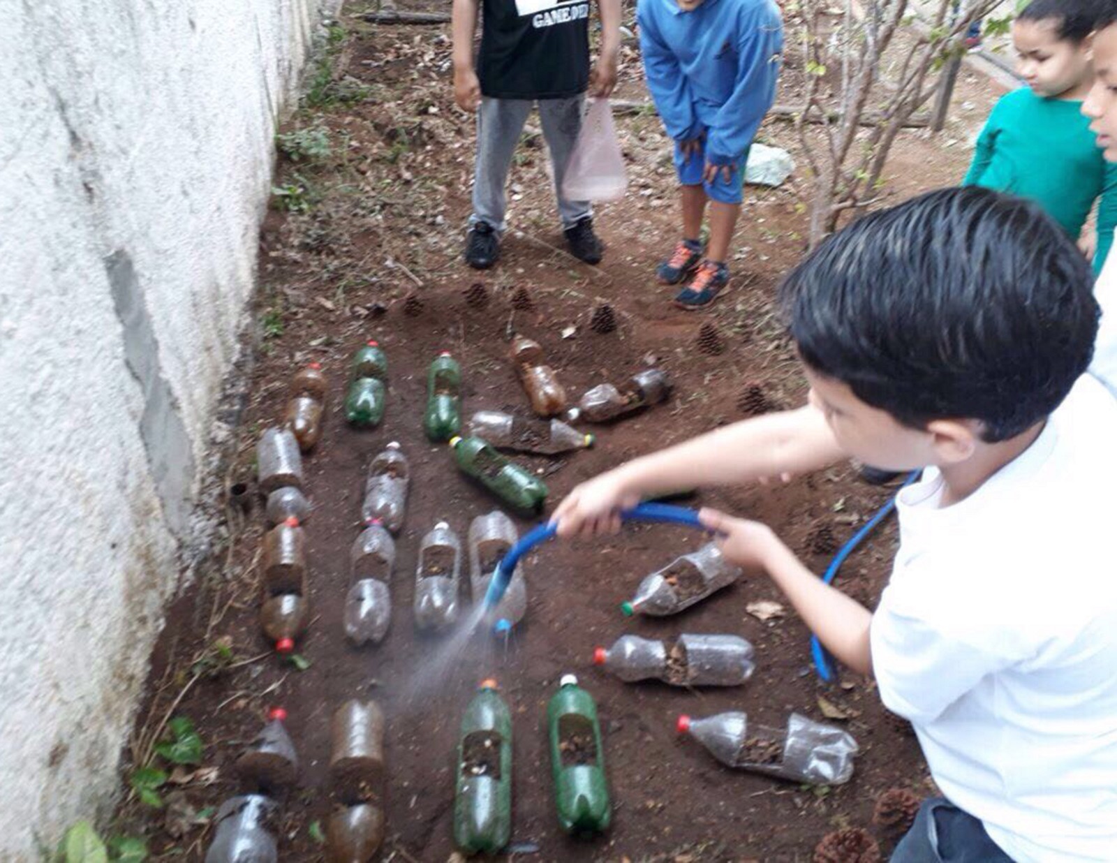 As crianças, junto com os professores, estão revitalizando a horta na escola. Cada sala tem um espaço. Já tem composteira e todas as salas tem sementeira e preparam sua prórpria terra para depois plantar.