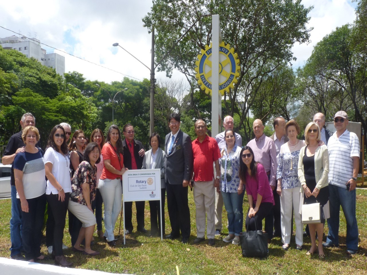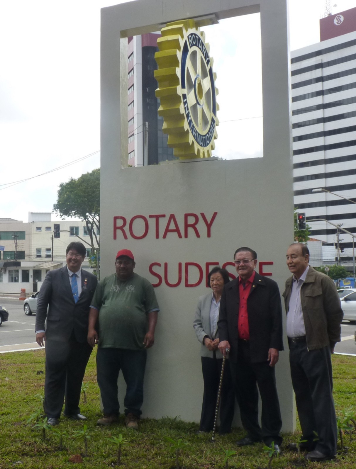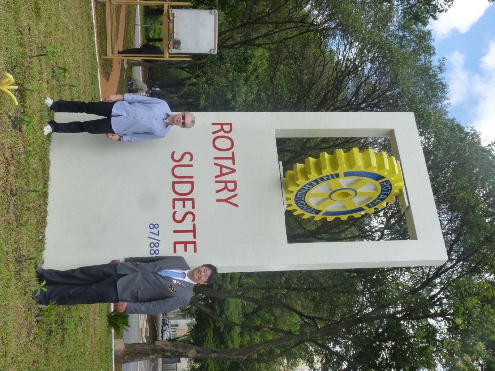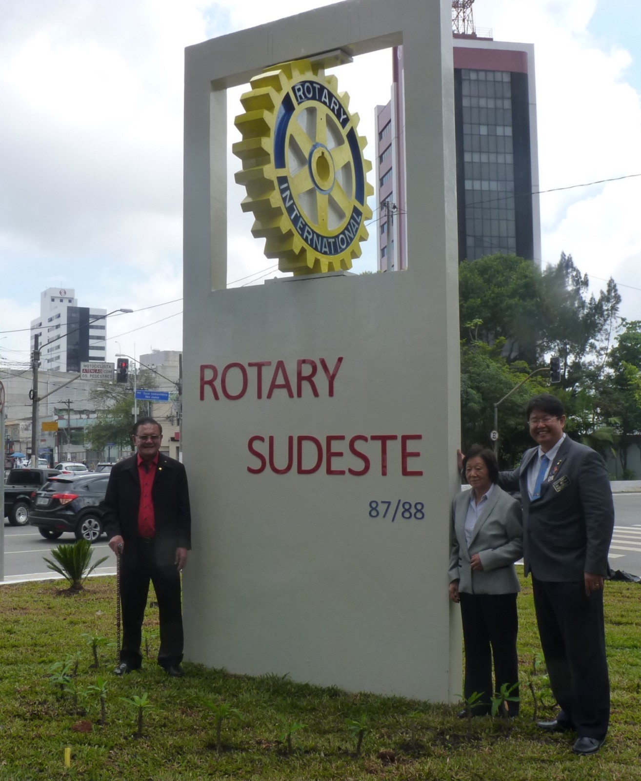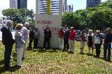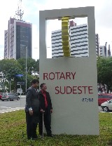 Encerrando a agenda de compromissos, no dia 9 de dezembro, foi realizada a reinauguração do Marco Rotário, localizado na Praça Mario Paulo Autuor. Claudio Takata, Oswaldo Kazumi Takata Takata (responsável pela reforma, representando o RCSP Sudeste) e sua esposa Hisame Uchida Takata, junto à presidente do clube e alguns associados participaram da cerimônia.