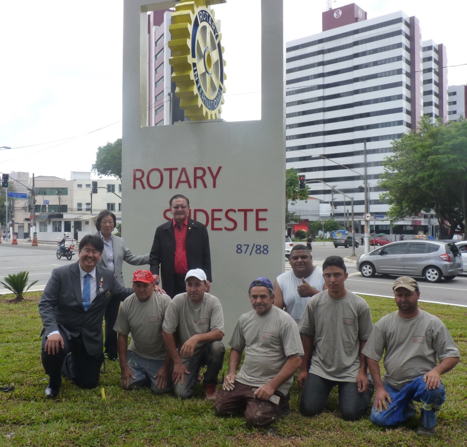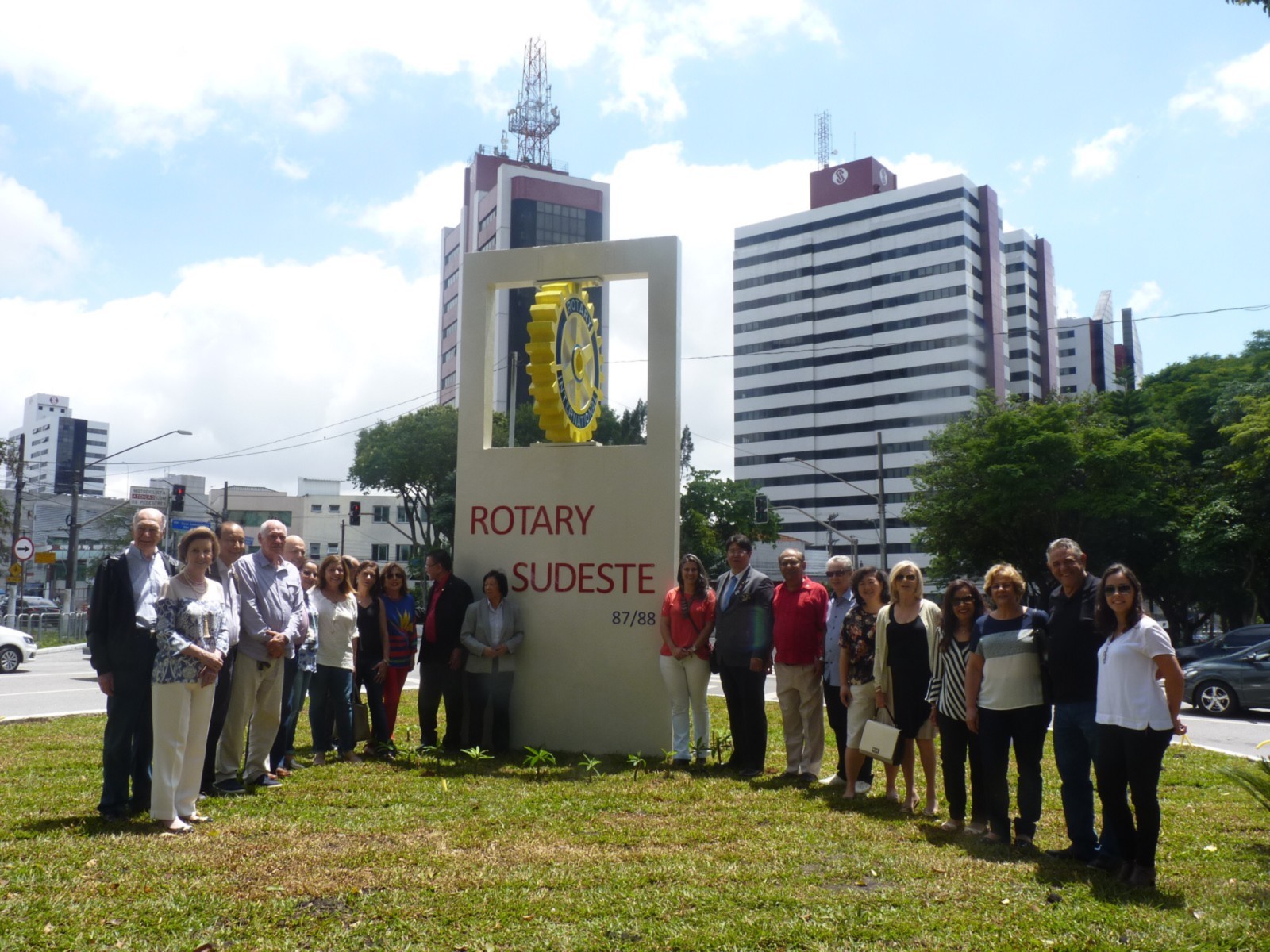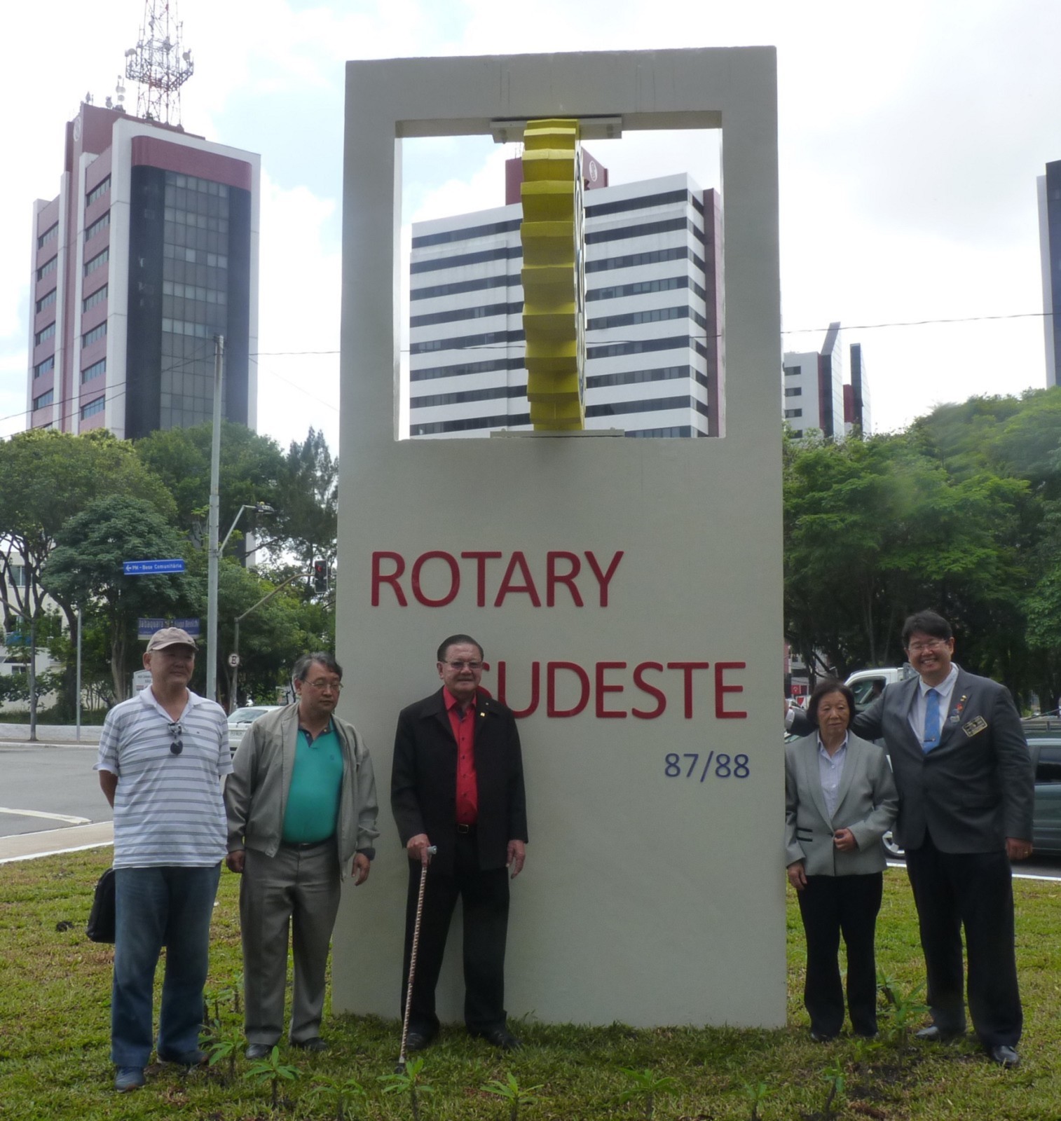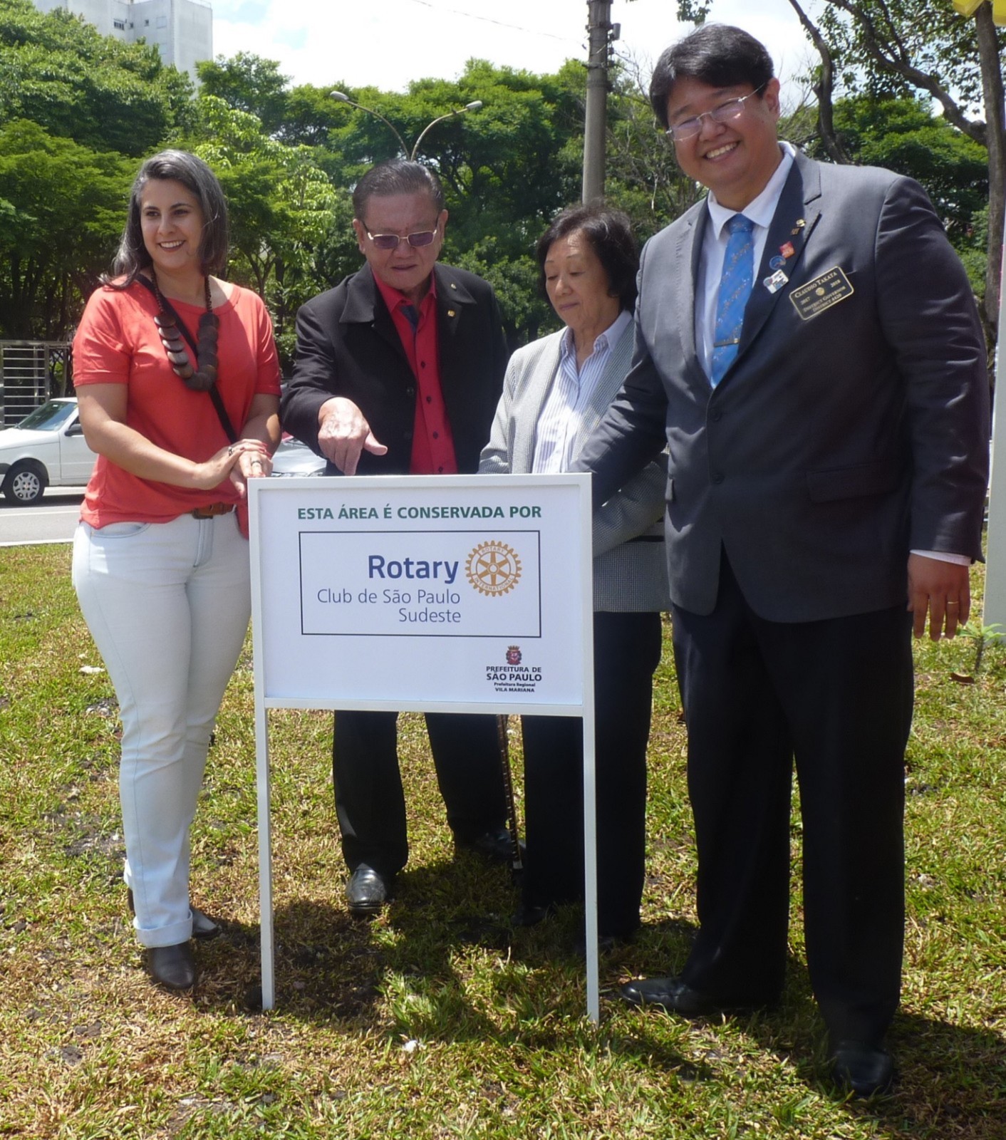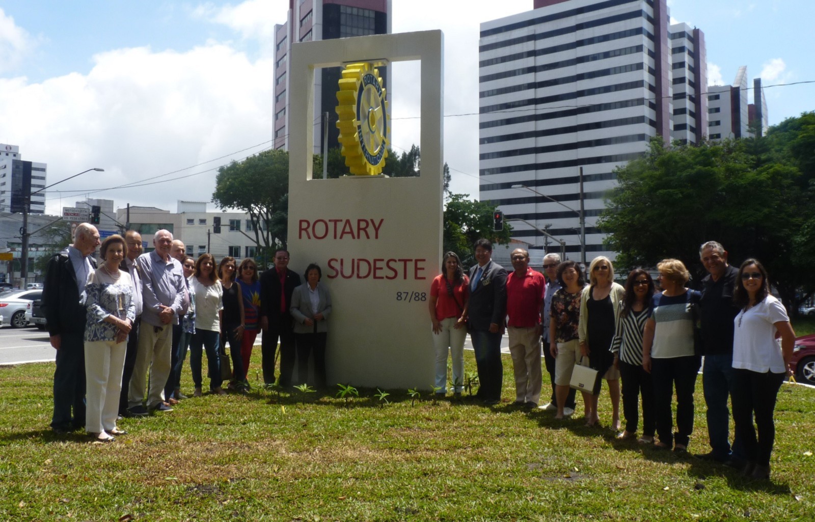 Encerrando a agenda de compromissos, no dia 9 de dezembro, foi realizada a reinauguração do Marco Rotário, localizado na Praça Mario Paulo Autuor. Claudio Takata, Oswaldo Kazumi Takata Takata (responsável pela reforma, representando o RCSP Sudeste) e sua esposa Hisame Uchida Takata, junto à presidente do clube e alguns associados participaram da cerimônia.