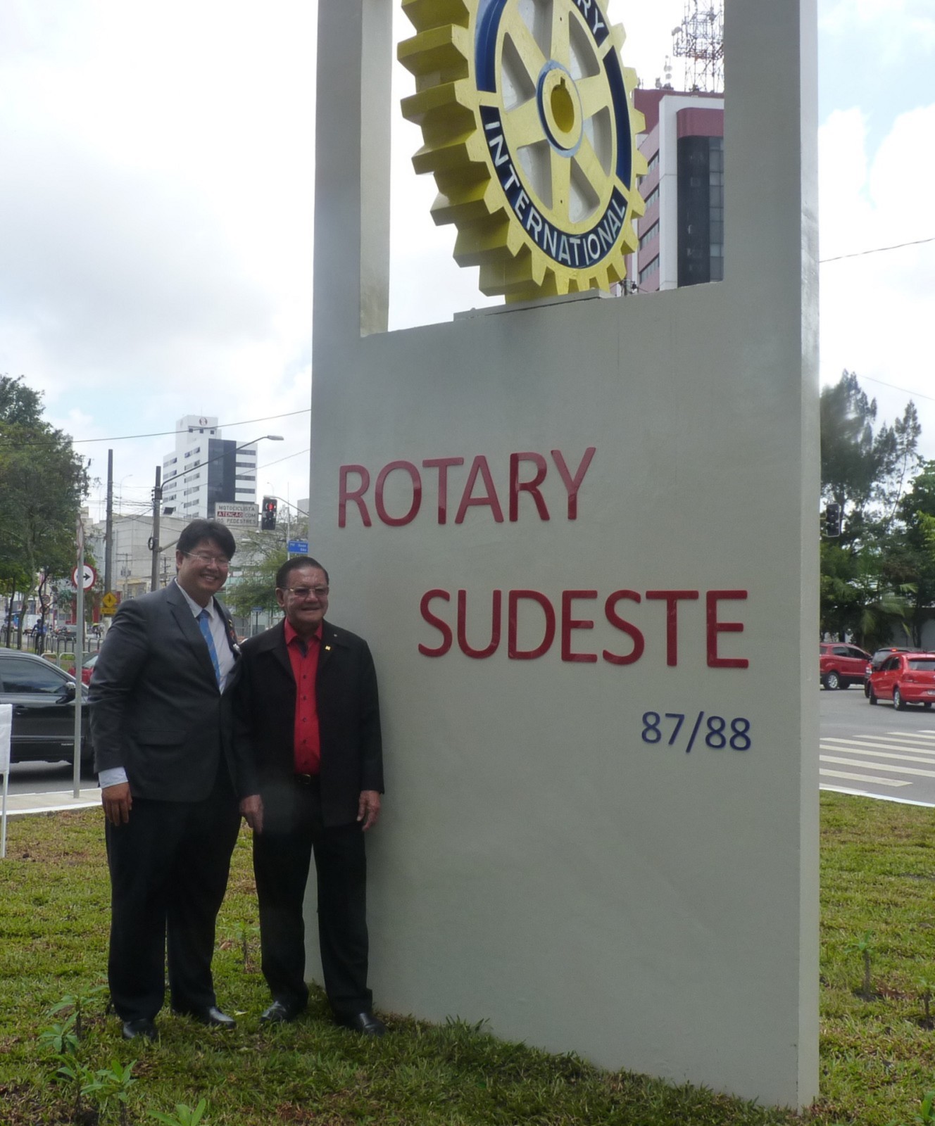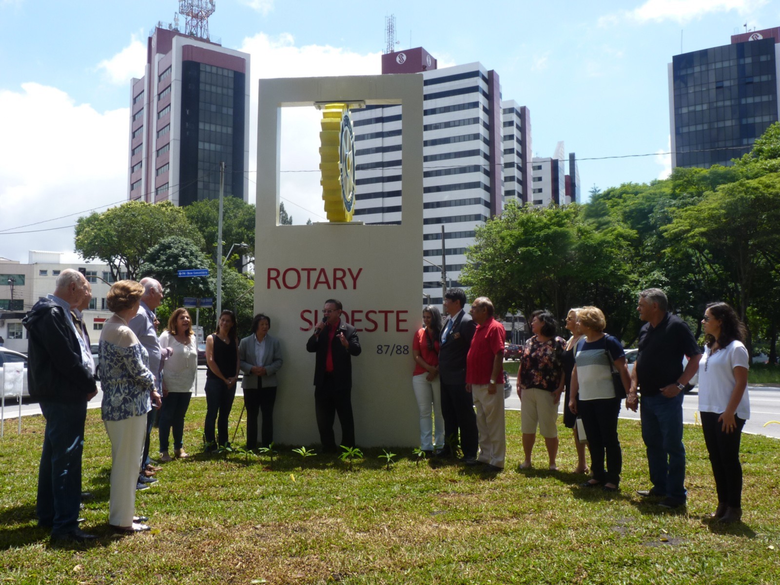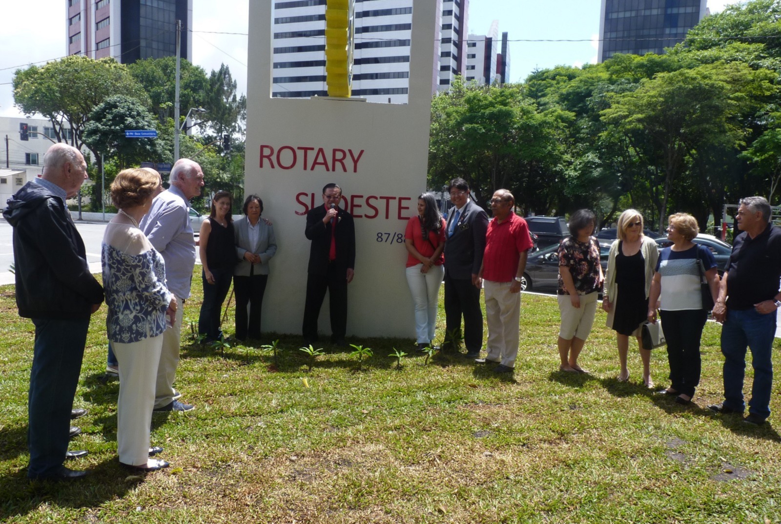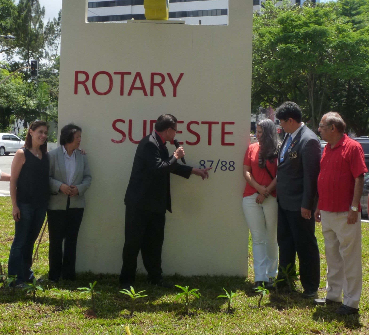 Encerrando a agenda de compromissos, no dia 9 de dezembro, foi realizada a reinauguração do Marco Rotário, localizado na Praça Mario Paulo Autuor. Claudio Takata, Oswaldo Kazumi Takata Takata (responsável pela reforma, representando o RCSP Sudeste) e sua esposa Hisame Uchida Takata, junto à presidente do clube e alguns associados participaram da cerimônia.