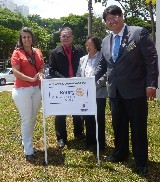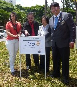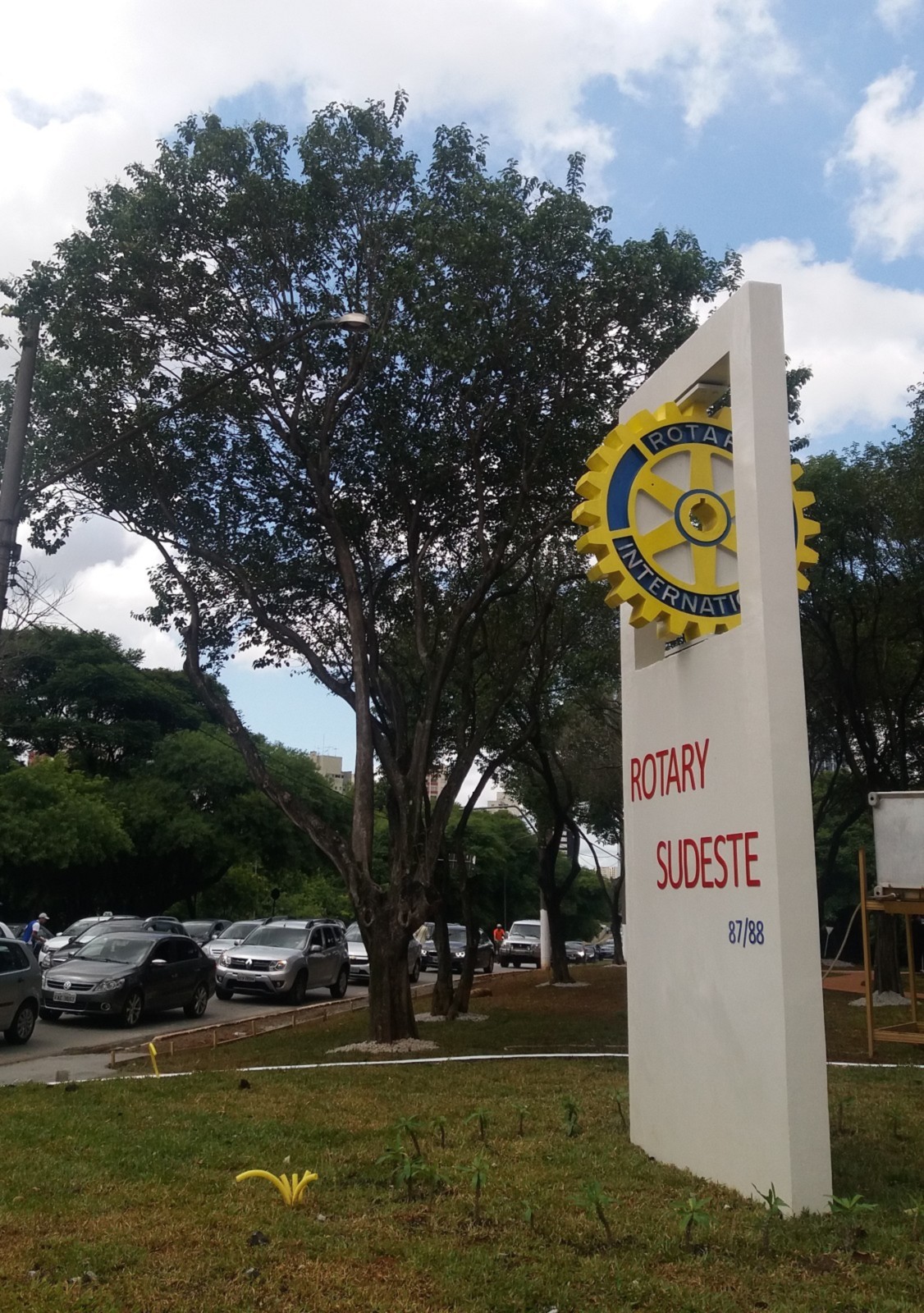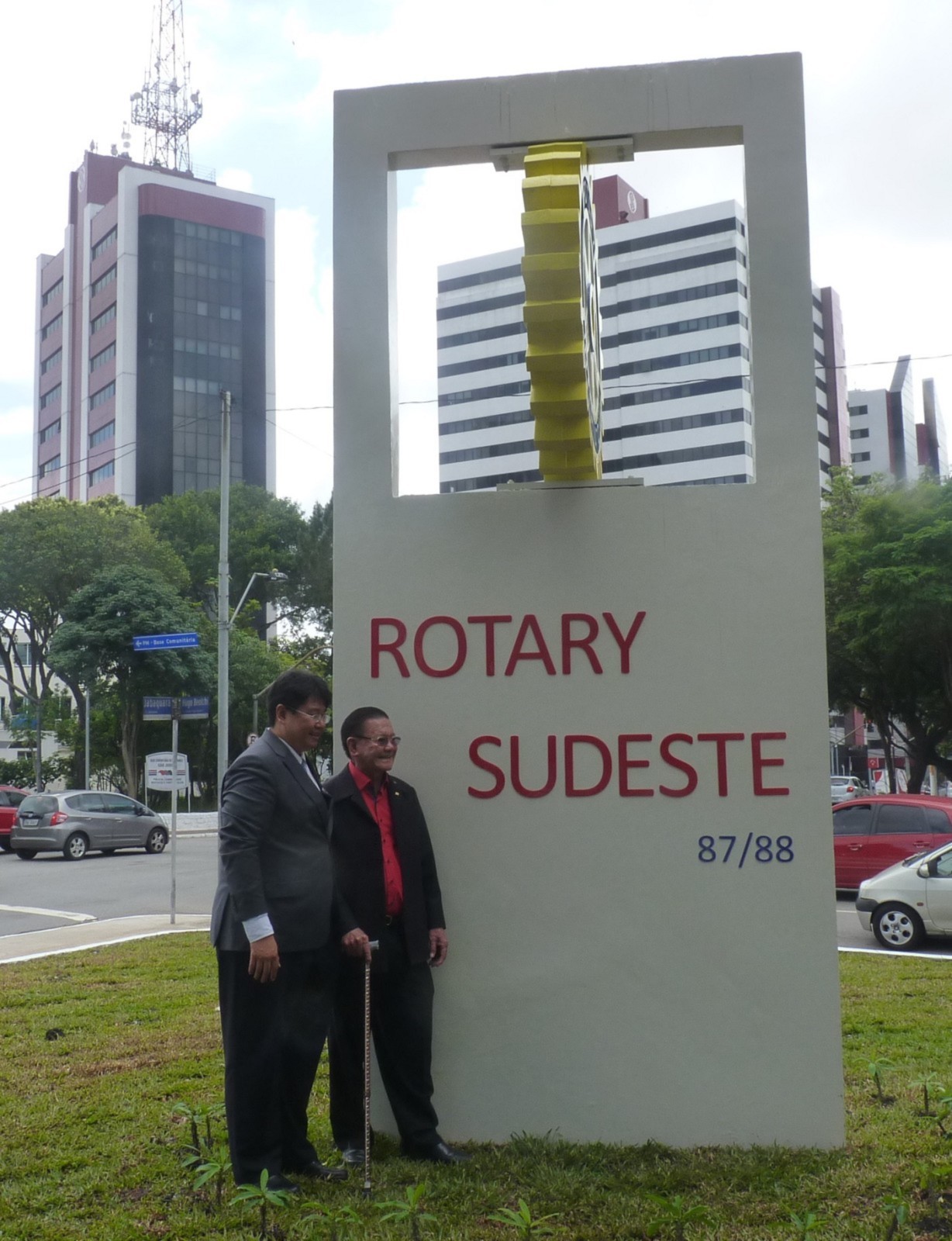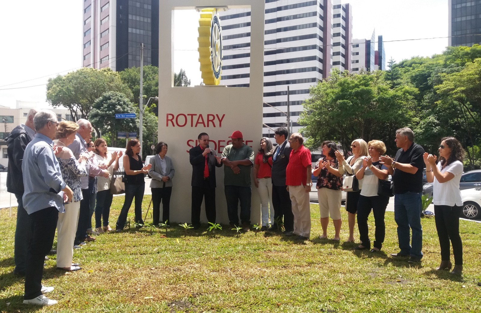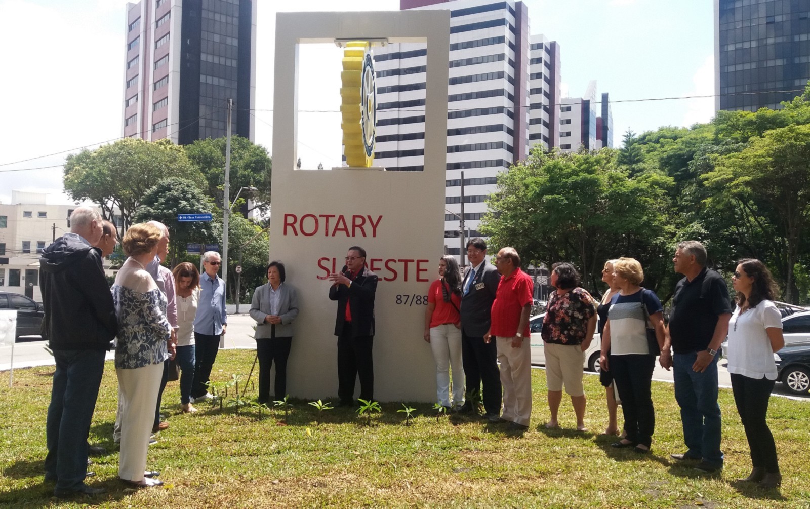 Encerrando a agenda de compromissos, no dia 9 de dezembro, foi realizada a reinauguração do Marco Rotário, localizado na Praça Mario Paulo Autuor. Claudio Takata, Oswaldo Kazumi Takata Takata (responsável pela reforma, representando o RCSP Sudeste) e sua esposa Hisame Uchida Takata, junto à presidente do clube e alguns associados participaram da cerimônia.