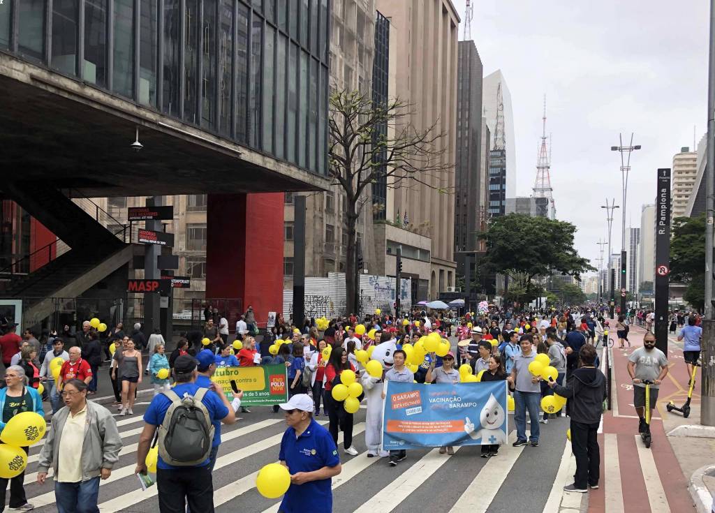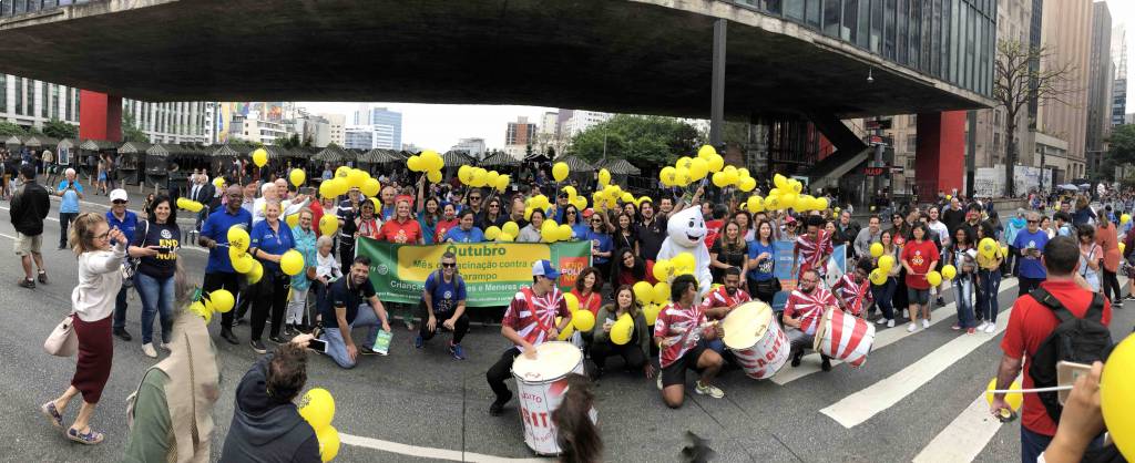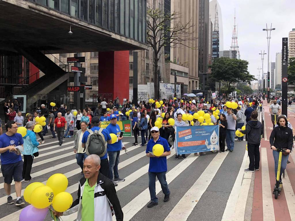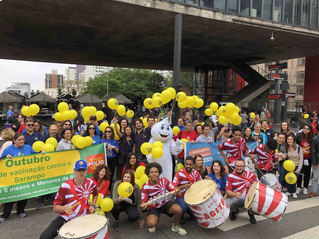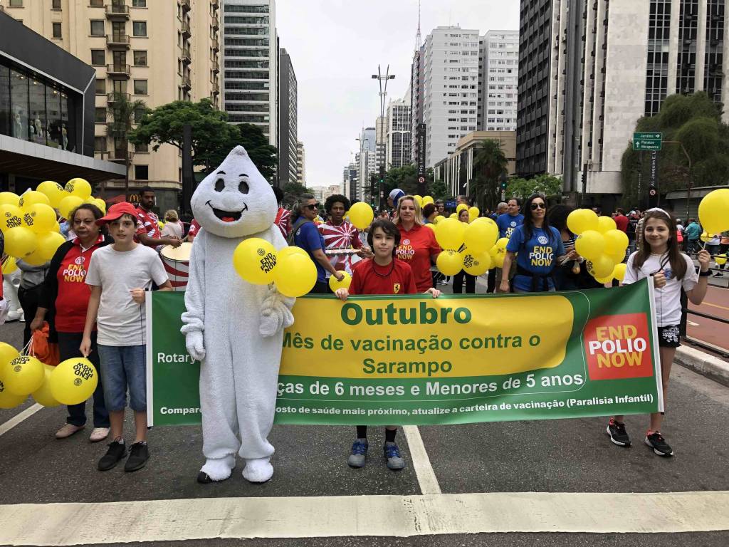 A caminhada em prol da vacinação contra o sarampo e a poliomielite foi realizada com sucesso no dia 20 de outubro de 2019. Na avenida Paulista foi possível reunir clubes de diversas áreas de SP, tanto para encher balões, desfrutar de um bom companheirismo, fortalecer a possibilidade de novas parcerias, integrar companheiros recém-chegados a instituição além de, embalado ao som da bateria da escola de samba fazer uma ação direta com a população, distribuindo panfletos e balões com a nossa marca. Foi uma manhã divertida, animada e de muitos rotarianos em ação, juntos combatendo a poliomielite e o sarampo! Os clubes participantes foram: área SP1 - RCSP Novas Gerações / RCSP Nove de Julho / RCSP Parque do Ibirapuera / RCSP Sudeste / Rotary Satélite SP Sudeste Confraria de Negocios e RCSP Sul | área SP2 - RCSP Centenário / RCSP Ponte Estaiada / RCSP Santo Amaro / RCSP Borba Gato | área SP3 - RCSP Anchieta / RCSP Independência / RCSP Paulistano / RCSP Ipiranga / RCSP Vila Mariana | área SP4 - RCSP Cidade Dutra / RCSP Manacas da Serra / RCSP Parelheiros / RCSP Interlagos | área SP5 - RCSP Aeroporto / RCSP Brasil Taiwan / RCSP Paraíso / RCSP Saúde / R Satélite SP Saúde Brasil Japão. | D. 4563: RCSP Av Paulista / RCSP Barra Funda / RCSP Cantareira / Gov. do distrito Mª Lucia e companheiros de seu clube, RCSP Norte / RCSP Oeste / RCSP São Miguel Paulista / RCSP Caxingui. Jovens intercambistas / Jovens do Interact / Jovens do Rotaract e associados do Rotary Kids. A imagem pública foi divulgada através de faixas, panfleto com orientações sobre a importância da vacinação, balões para alegrar e chamar atenção das crianças, e som da bateria da escola de samba que foi animando e convidando as pessoas para se unirem a nossa caminhada. A todos os responsáveis, GA’s, presidentes, associados e amigos que participaram, fica aqui a certeza de que a união é possível e só traz melhores resultados. Valeu a presença de todos e que possamos repetir mais e mais anos conscientizando e divulgando.