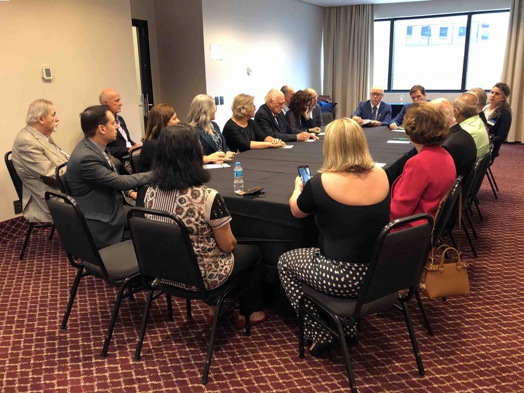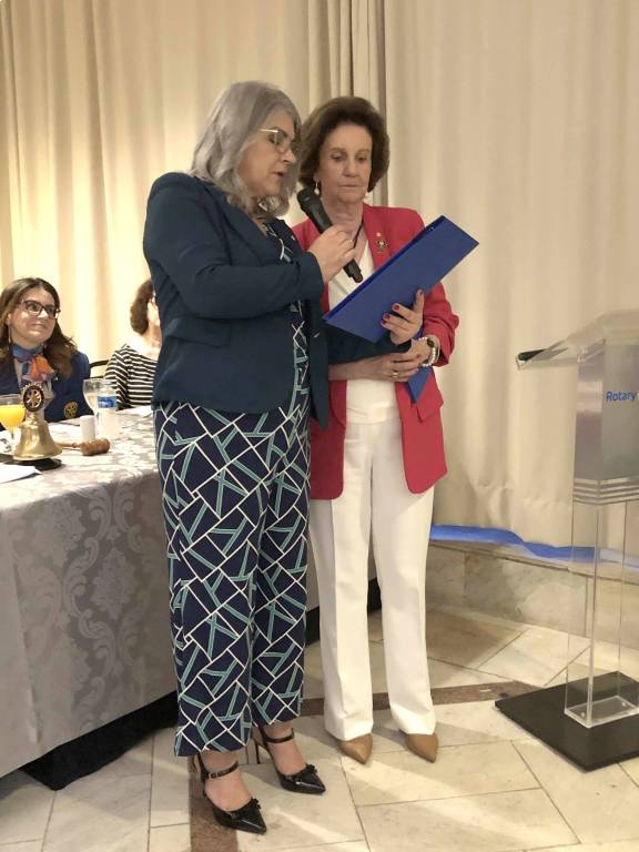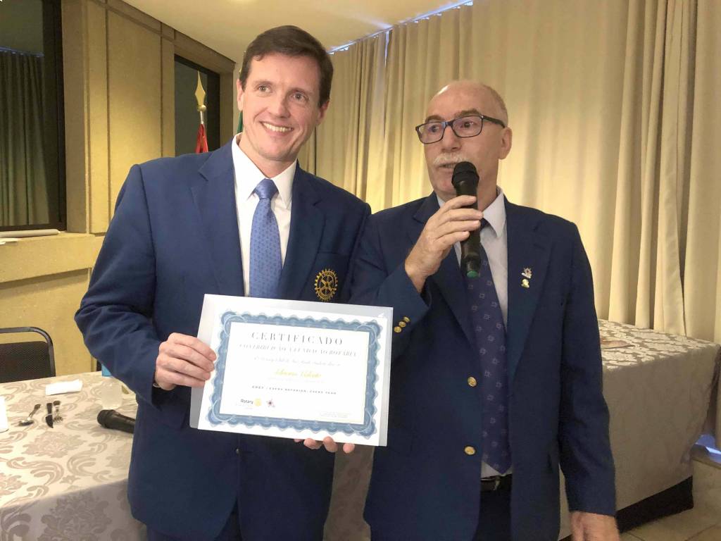 Logo cedo, para o café da manhã, o casal Alice e Adriano, governador 2019-20 do D-4420, rotarianos, alunos e equipe da E.E. Valentim Gentil reuniram-se. Foram momentos de descontração para a partir dalí, iniciarem-se as atividades da visita. As crianças da escola montaram um tipo de jogral para apresentar tudo o que o RCSP-Sudeste tem feito por elas e pela escola e puderam ouvir uma linda mensagem de incentivo a elas, vinda do gov. Adriano. A seguir os rotarianos entregaram duas cadeiras de rodas à escola, adquiridas com a coleta de lacres de alumínio e percorreram a escola com o casal, mostrando o desenvolvimento e sucesso dos projetos. Alice e Adriano conheceram o consultório dentário, fruto de subsídio, e dirigido pela Dra. Cristina Nishitani que atende a todos na escola, conheceram a horta Paulo Viriato Corrêa da Costa, também fruto de subsídio, cuidada pelas crianças da escola como parte do currículo escolar e consumo interno. Conheceram também o lindo projeto "Integrando Novas Possibilidades" desenvolvido pelas companheiras psicólogas Priscilla Vitorino e Mª Olímpia e pela pedagoga Karina Barion com crianças e idosos que acontece uma vez por semana em uma sala disponibilizada pela escola. Uma das participantes do grupo de idosos fez questão de ler seu depoimento em agradecimento a toda transformação em sua vida que vem acontecendo desde quando começou a frequentar o projeto. Após a visita e a caminho do Bourbon Convention Ibirapuera Hotel, onde o Sudeste se reune, o grupo parou no marco rotário do RCSP-Sudeste. Seguiram para a reunião onde aconteceram as reuniões separadas e a assembléia do Governador com os associados. O presidente Vitor iniciou a reunião com a posse das duas novas associadas do Sudeste, Martha Maria Pontes Abdalla e Aida Pereira Villa. As duas foram homenageadas e usaram a palavra para fazer o juramento de associadas e manifestaram a satisfação de passarem a pertencer ao quadro de associados do Clube. Na sequencia o Diretor de Protocolo convidou à frente os seguintes Companheiros para a entrega de Títulos Paul Harris: Rui Cabral de Mello que homenageou Monica Paschoal Nogueira e Alaíde da Silva Pereira Vitorino que homenageou Ricardo Gomes Gonçalves. O Presidente do Clube, Vitor Martins e o Governador do Distrito 4420 Adriano Valente, homenagearam as Empresas Cidadãs que através do RCSP-Sudeste contribuem para a ABTRF/Fundação Rotária: - Grupo Qualidade em Saúde, - Eximium – Assessoria Empresarial, - M.A.R.C.A. Consultoria. Aos responsáveis pelas empresas foi entregue um Banner alusivo. O Presidente Vitor Manuel Martins informou que como homenagem aoGovernador Adriano Valente, o Clube doou à Fundação Rotária, em seu nome, o valor correspondente ao EREY.O Governador Adriano presenteou o Presidente Vitor com um pequeno cofre cujo modelo poderá ser utilizado para arrecadar moedas para ações de apoio para comunidades carentes. Também entregou um conjunto de cervejas, cuja venda deverá reverter parte do valor para ações comunitárias. O Presidente Vitor Manuel Martins convidou o Governador Adriano Valente, para ocupar a tribuna e fazer o uso da palavra. O Governador salientou novas posturas que está adotando na administração do Distrito, especialmente na divulgação do movimento rotário e para arrecadação de recursos em ações de maior vulto e expressão, na aproximação com grandes empresas como fonte de recursos para a Fundação Rotária, aliviando desta forma, a pressão arrecadatória em cima dos próprios rotarianos. Salientou também uma grande preocupação em relação a trabalhar bem o que é arrecadado. Mencionou as principais ações que estão programadas para acontecer durante sua gestão para salientar a ¨Marca Rotary¨. O Governador também expressou seu apreço pelo RCSP-Sudeste, por ser um Clube de grande sucesso e que consegue com o passar dos anos se manter como líder e executa projetos relevantes, parabenizando todos os seus integrantes.